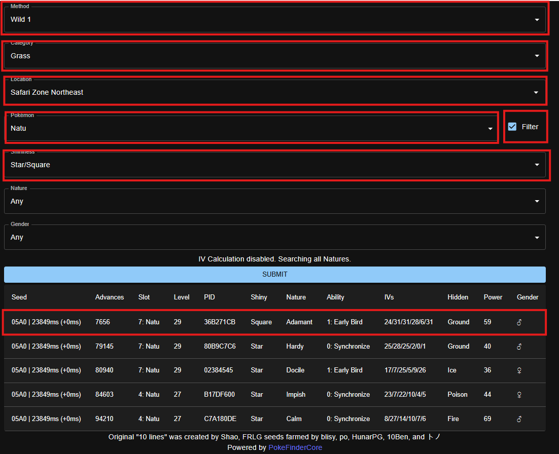Reminder: If you hit 0 results, check Wild Methods 2 & 4, your Pokemon could be hiding there!