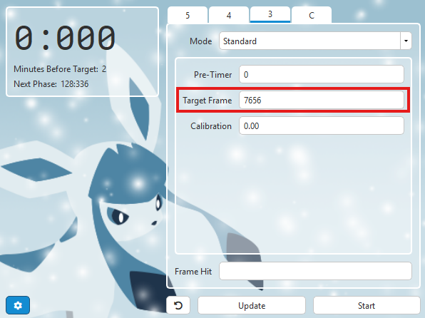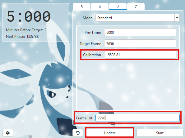 Your Eon Timer should look something like this, but with your target advance instead. By this point in the tutorials, you should be comfortable setting Eon Timer up on your own.