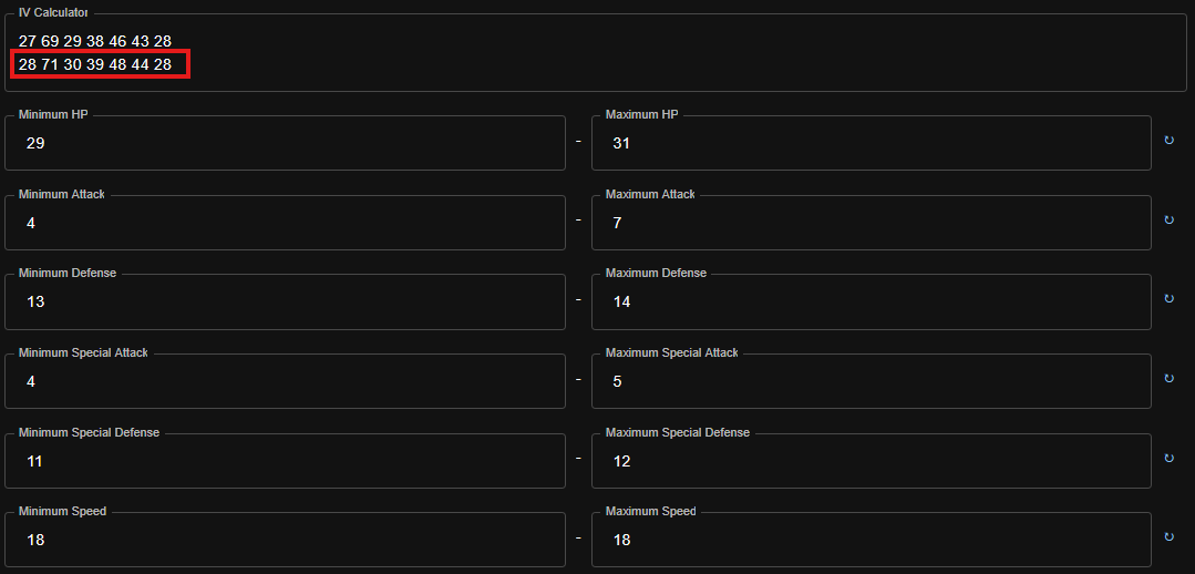 Once you finish entering them, the IV Filters in Calibration will be populated with a range of potential stats of your Pokemon.