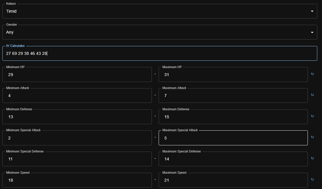 Once you select a Nature, the IV Calculator function will appear.